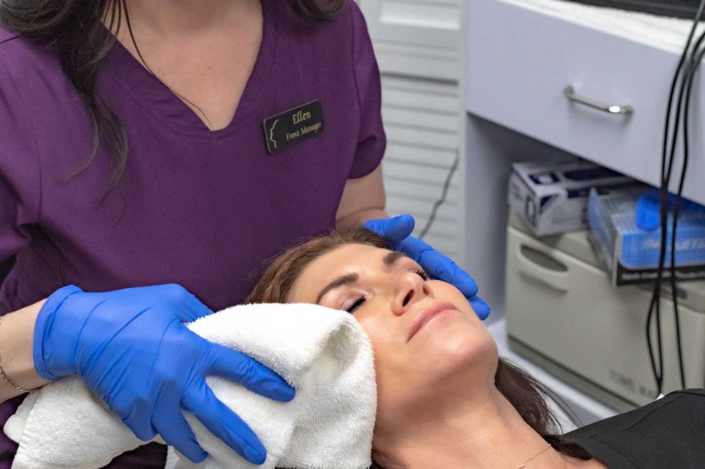 Hydrafacials focus on damage prevention, nourishing, and restoring your skin to a younger, glowing, more radiant appearance. A Hydrafacial is a non-invasive treatment that enhances the appearance of your skin and promotes skin restoration.